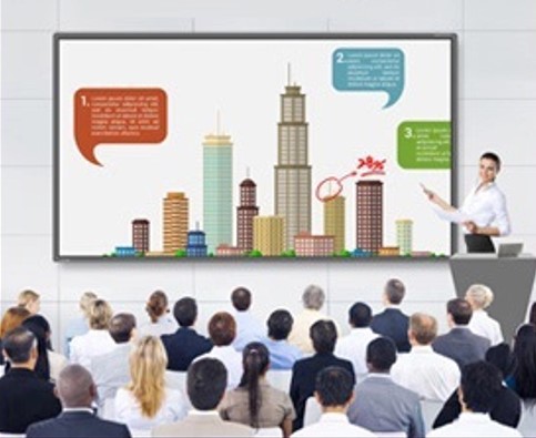 Tela de toque interativa profissional com câmera, exibição comercial para negócios, apresentações, treinamento, brainstorming, relatórios, vendas, edição, estratégia, atualização… Você escolhe.